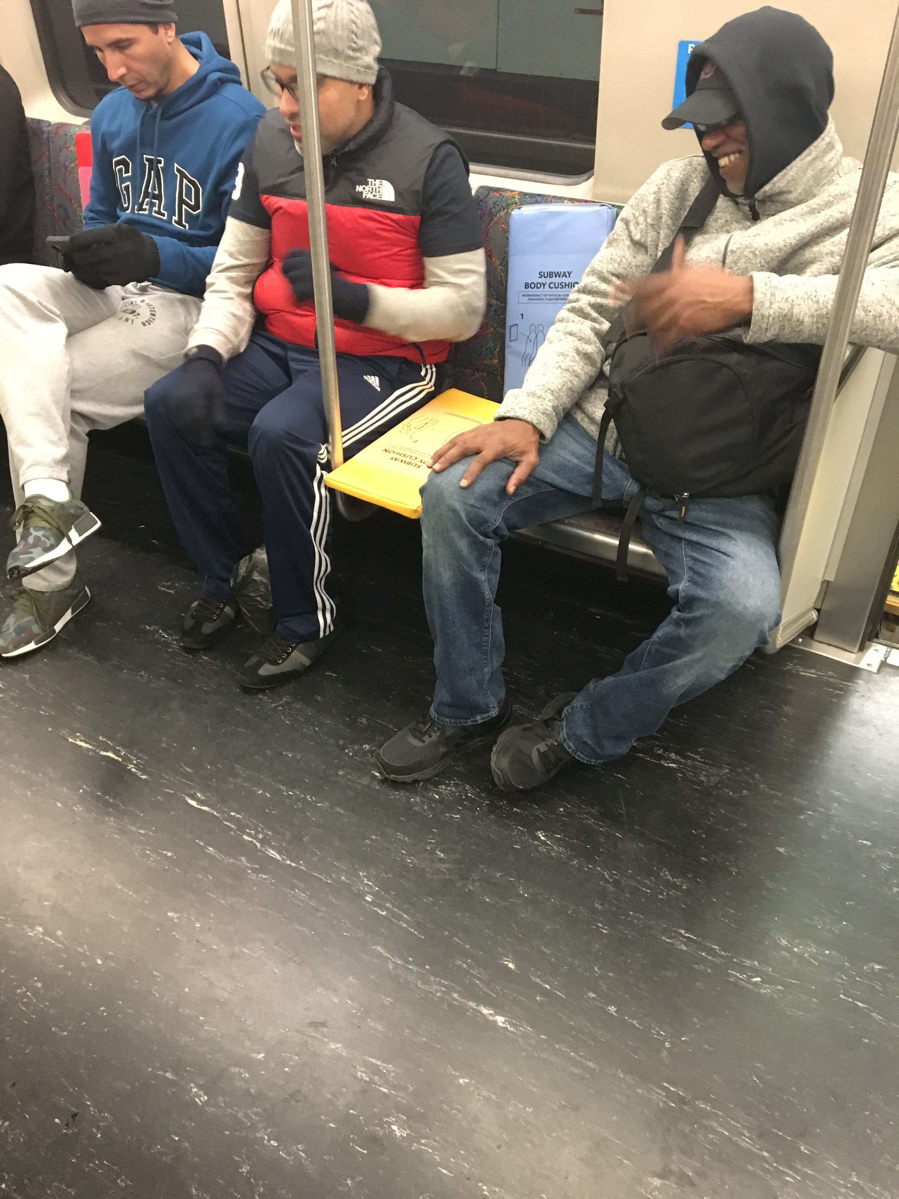 Subway Body Cushions is a 2-hour intervention on the Boston MBTA Red Line. It responds to the lack of personal space on public transportation by providing soft cushions that people can place between seats. However, the cushions cannot stand on its own and rely on two passengers to hold it up collaboratively. Thus, the cushions not only serve as a personal space creator but also an object linking the strangers; it replaces the uncomfortable situation of trying not to touch each others’ bodies with an opportunity to connect in a simple way. During the two-hour intervention, some passengers used the cushions and many discussed it or laughed about it together.